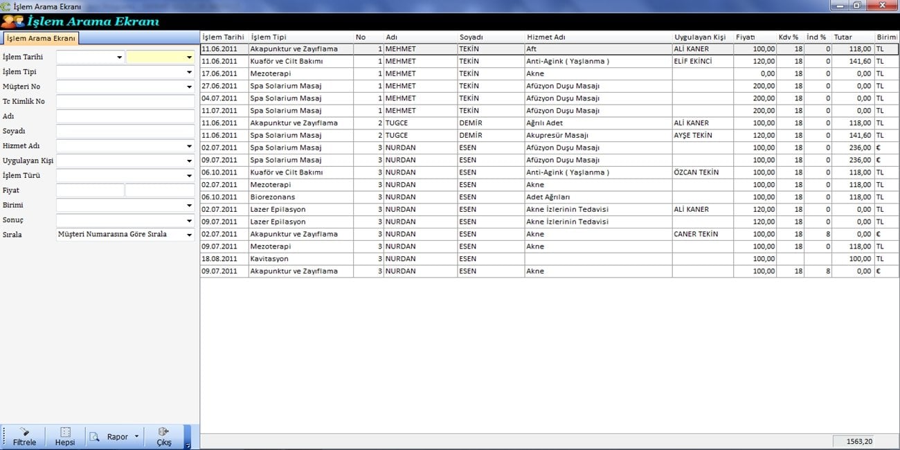 Hursoft Güzellik Merkezi Programı Ekran Görüntüleri