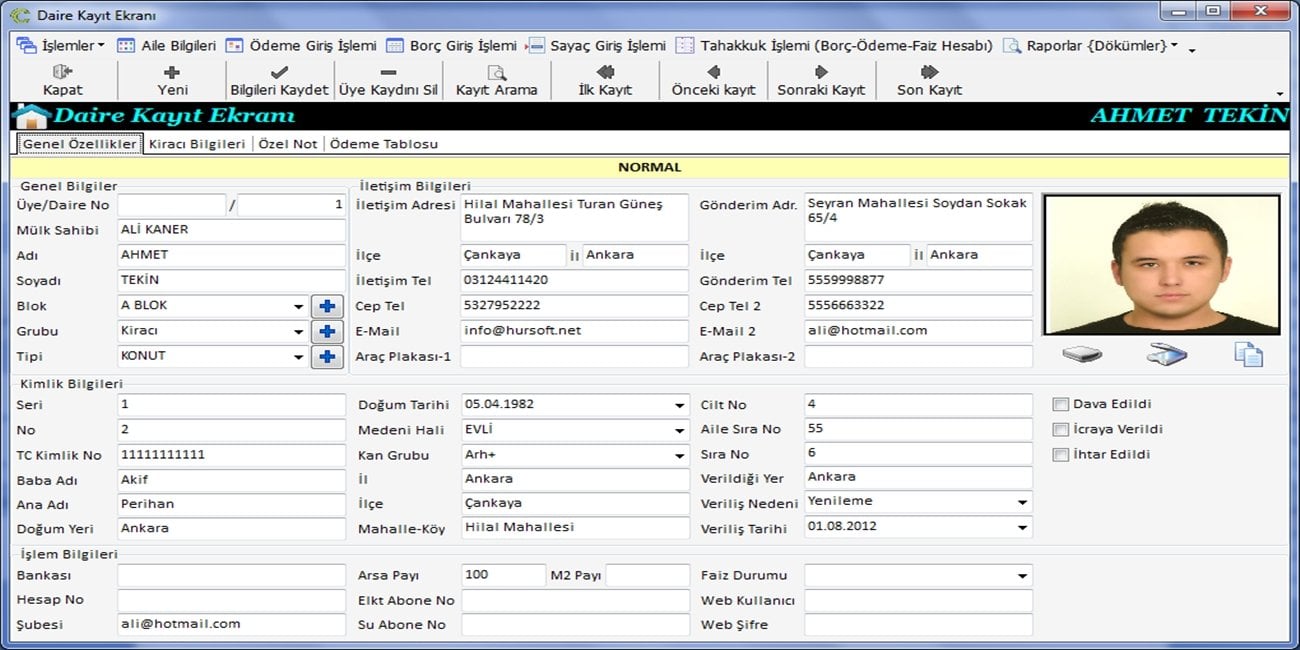 Hursoft Kiracı Takip Programı Ekran Görüntüleri
