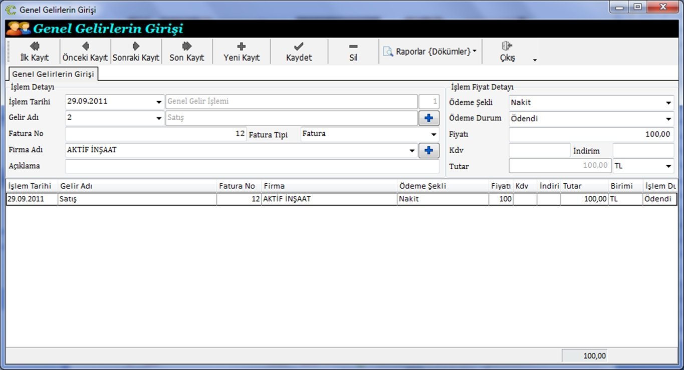 Genel Gelir Giriş Ekranı